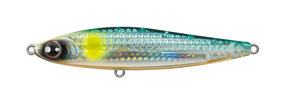A unique weight system within the belly of the lure, combined with the shape of the lures curves, causes the bait to "shimmy" and flash on the fall evoking predatory interest. The business ends of the lure are outfitted with needle-sharp 3x strong BKK trebles hooks for ultimate penetration and holding power. The compact design and weight system nets the lure 20 grams of total weight, perfect for anglers to fire the bait into tight structure with distance, accuracy, and confidence.