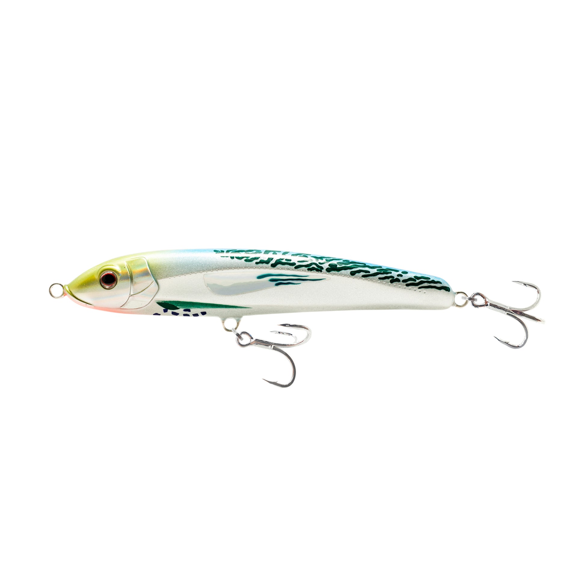 The RIPTIDE 125mm sinking stickbait is an ideal sinking stickbait for Kingfish, Mackerel, Tuna, Queenfish, GT’s, Barramundi and any other inshore saltwater predator. It has been designed to sit level, and slowly sink, when paused on the retrieve, to mimic a wounded baitfish. The placement of the internal weights also means that when twitched in a “walk the dog" style retrieve, it has an incredible side-to-side action, turning nearly 180°. It can be fished fast or slow, in rough or calm water and is a hugely versatile lure with a variety of retrieve styles.